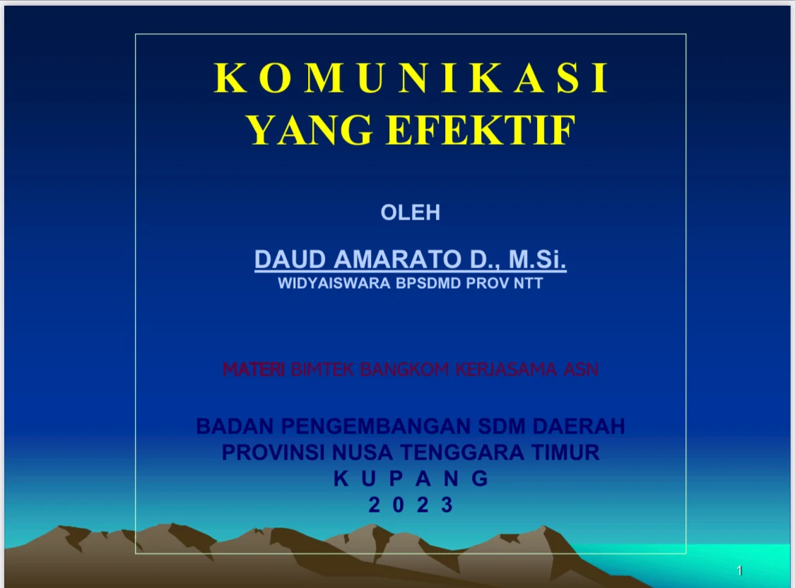 Sehubungan dengan itu, semua pihak, termasuk ASN perlu mengetahui bagaimana membangun komunikasi yang efektif, sebagaimana termuat pada slide berikut ini. (Silahkan klik cover di bawah ini)